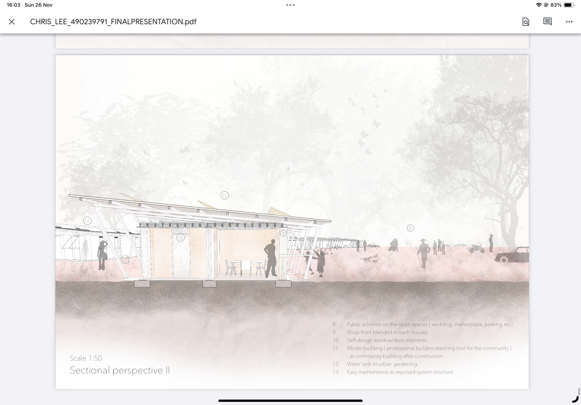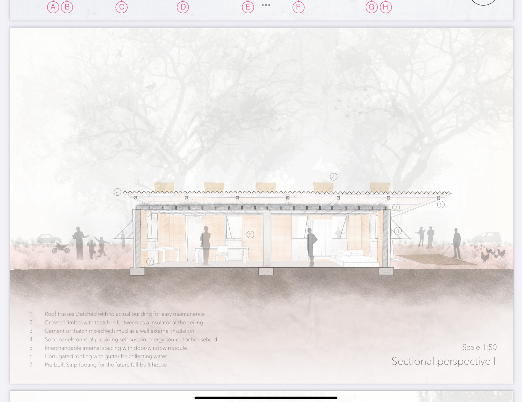 the word “taolo” came from the local language meaning sustainable and growth... Located in the heart of Gaborone, the capital city of Botswana, taolo provides a sustainable way to allow families to expand and complete their house, without rebuilding most of the walls. The design is developed around the historical houses and their use of the thatched roofs as insulation. of the house. the complete house is not meant to be complete from the start, yet gradually being built when the family needs it without tearing down existing structures, saving up materials and resources. Furthermore, the frontage can be used to operate as a storefront to provide opportunities for family businesses. These houses are also easy to construct and meant to last, thus giving a sustainable community for generations.