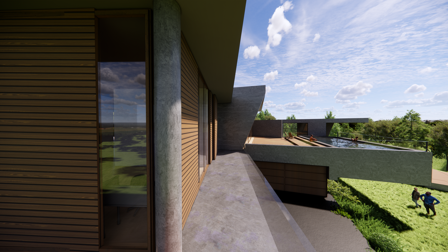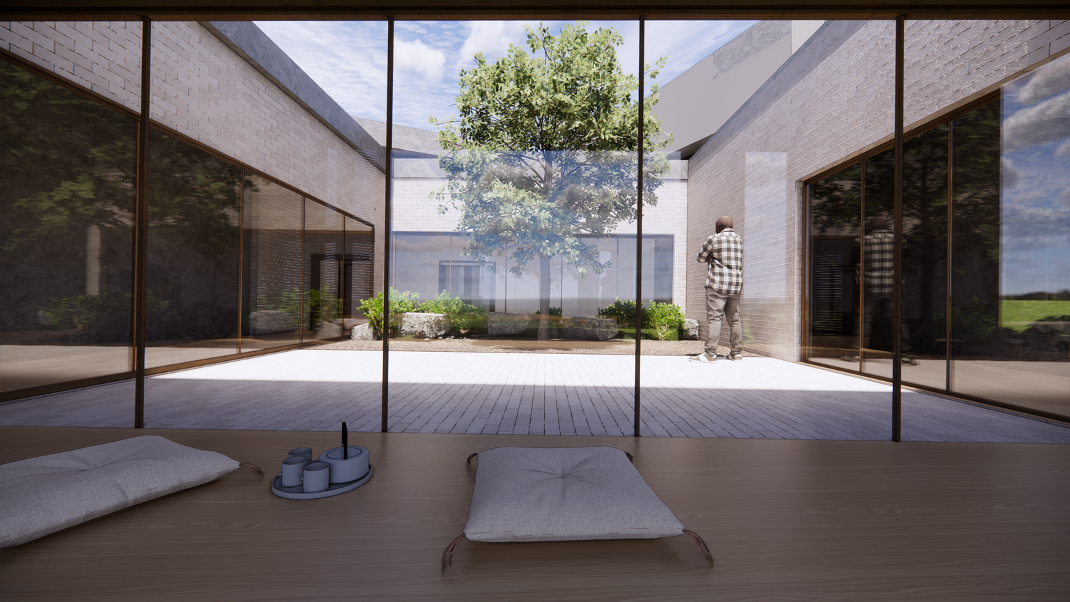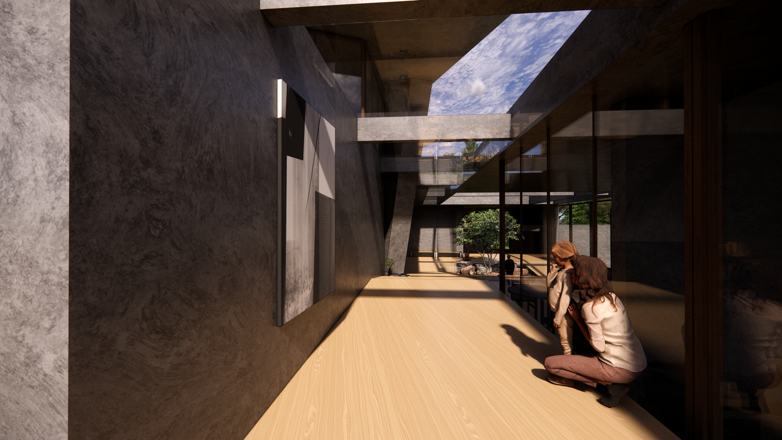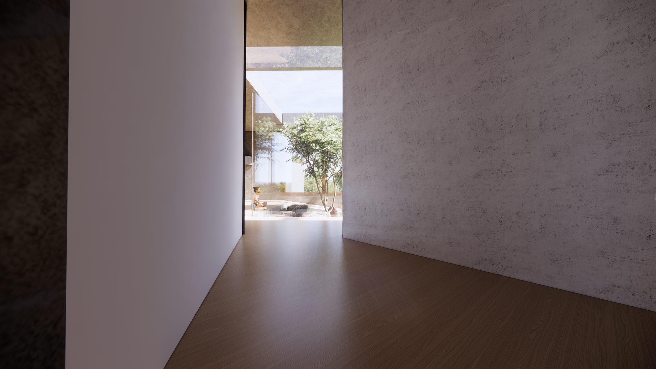 to have a seamless connection between the residence and the surroundings, internal courtyards are placed throughout the residence, echoing the greenery within the vicinity. passing through different thresholds within the architecture, the courtyards act as a bridge to different spaces within the oasis. the use of concrete and timber provides an aesthetically pleasing entry, enhancing the spatial experience for one to enjoy.