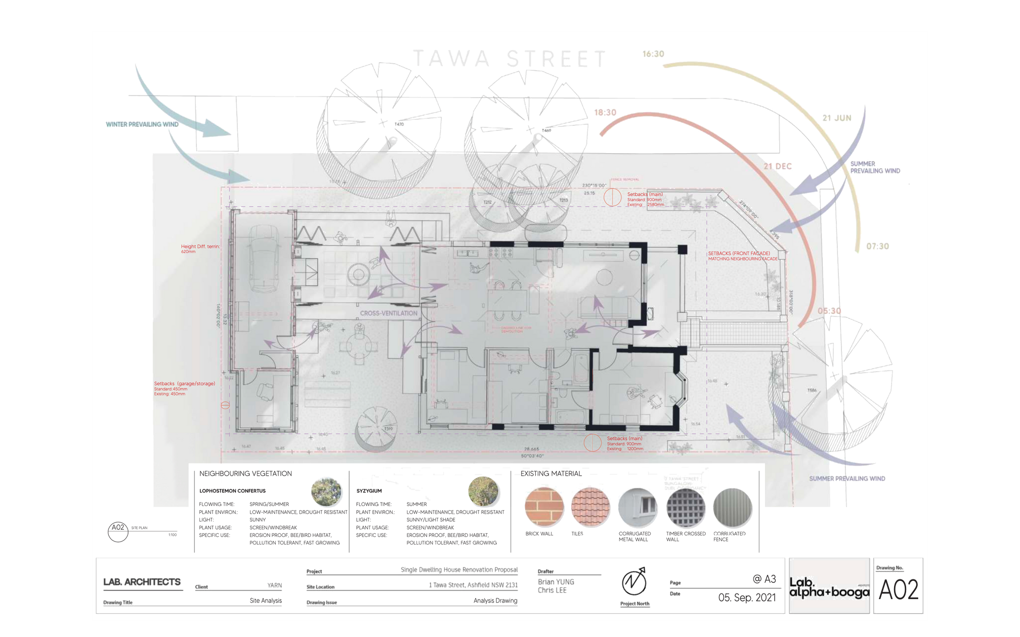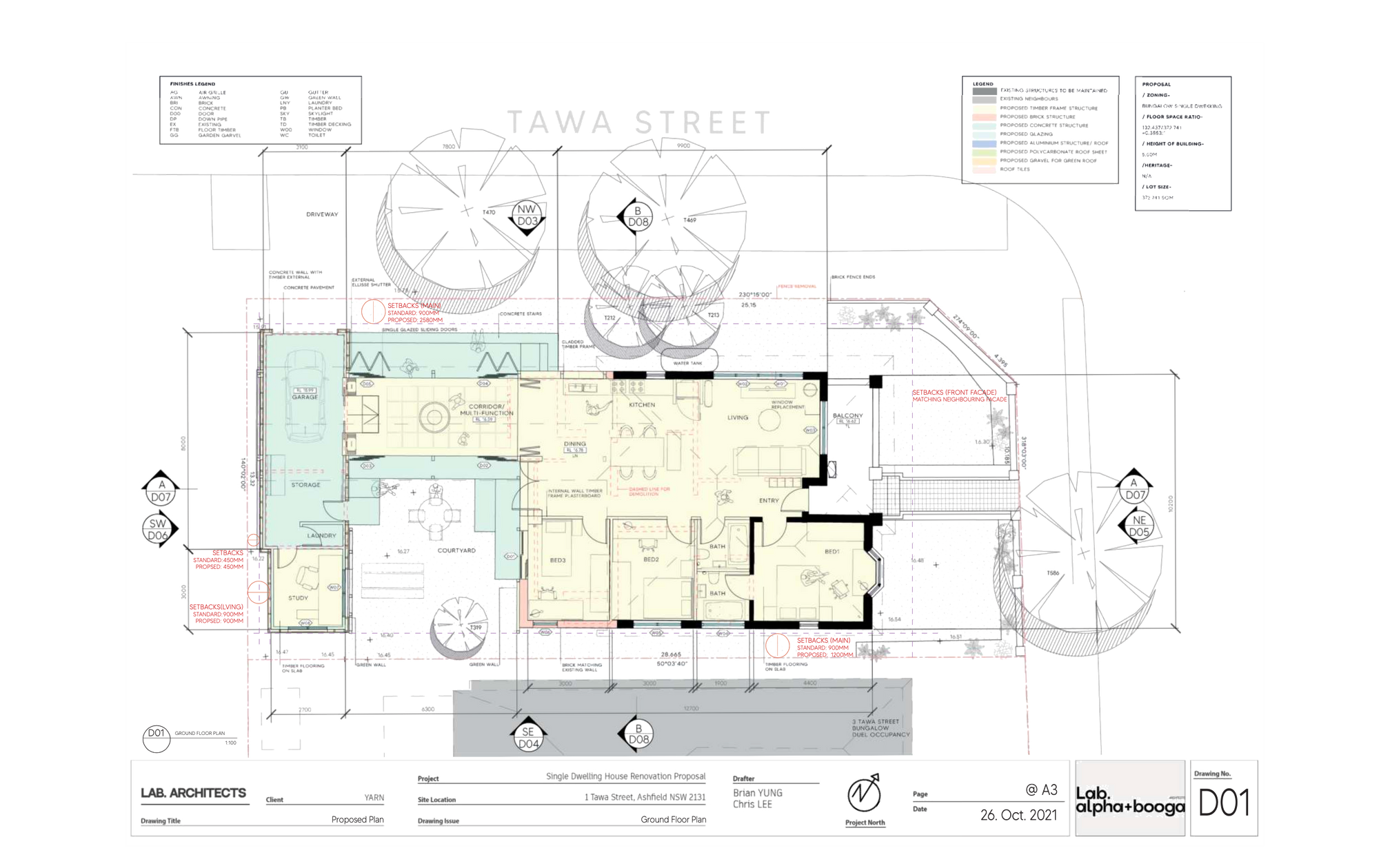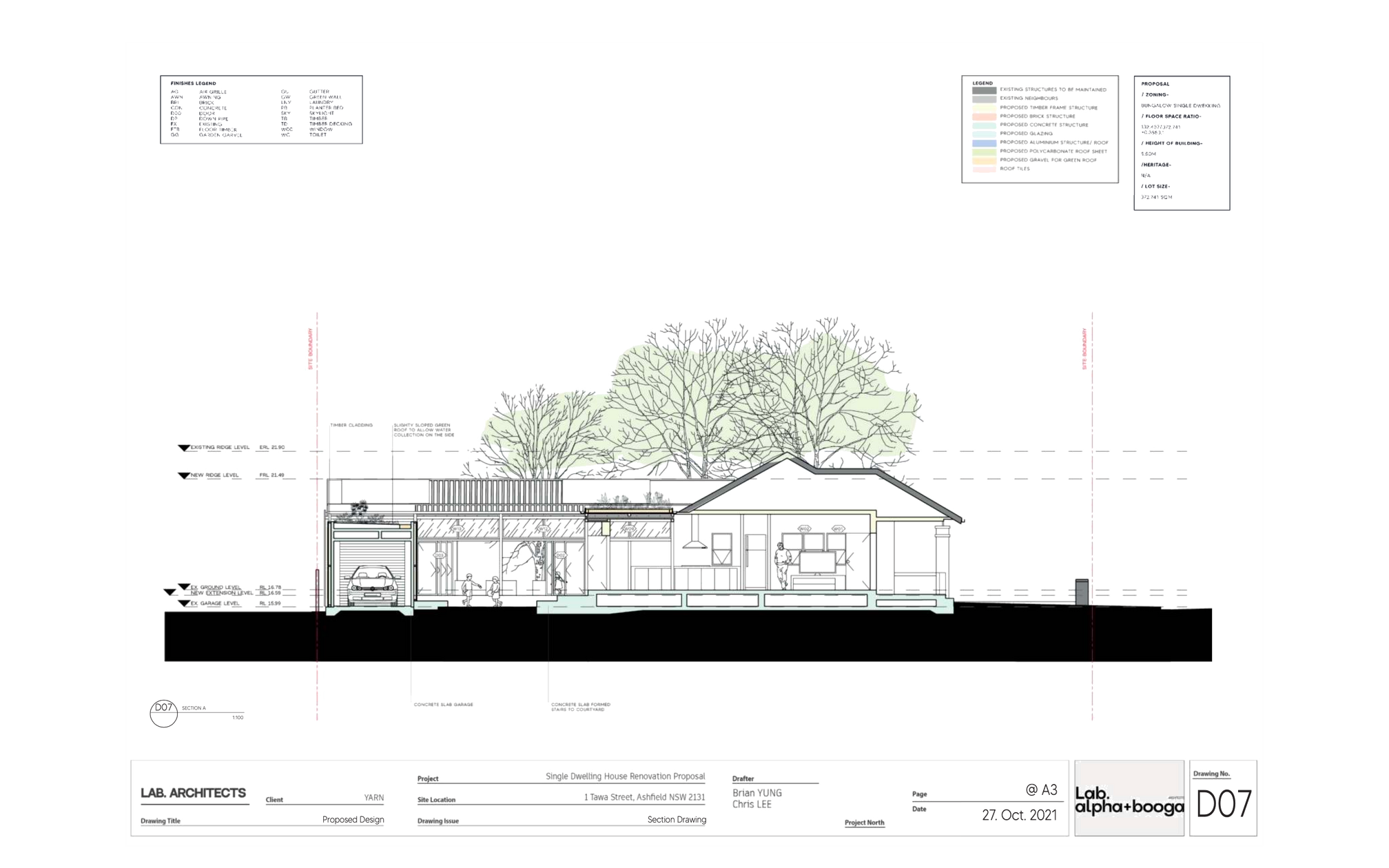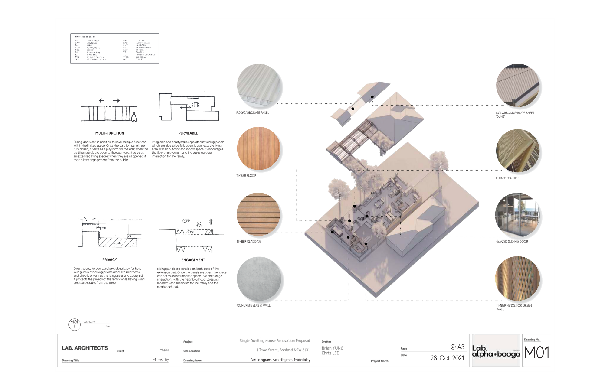 A Cozy Bungalow in the Heart of Ashfield with a Private Courtyard Nestled in the heart of Ashfield and located across a park, this quaint bungalow is home to a family of four. As a family with two young children, having ample open space is a necessity for their development. That's why the enclosed courtyard was included in the design. The space connected to the garage serves as a multifunctional corridor, with folding petitions that can be repurposed as needed – a kids' playroom, study, storage area, and more. The corridor also opens up to the private courtyard, providing an inviting entrance to the home. The surrounding greenery, including the roof, creates a serene environment while reducing heat transfer into the bungalow.