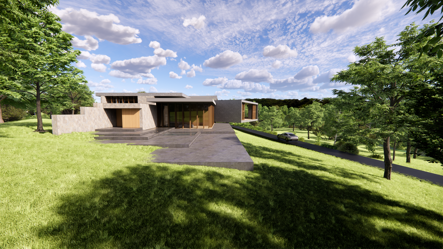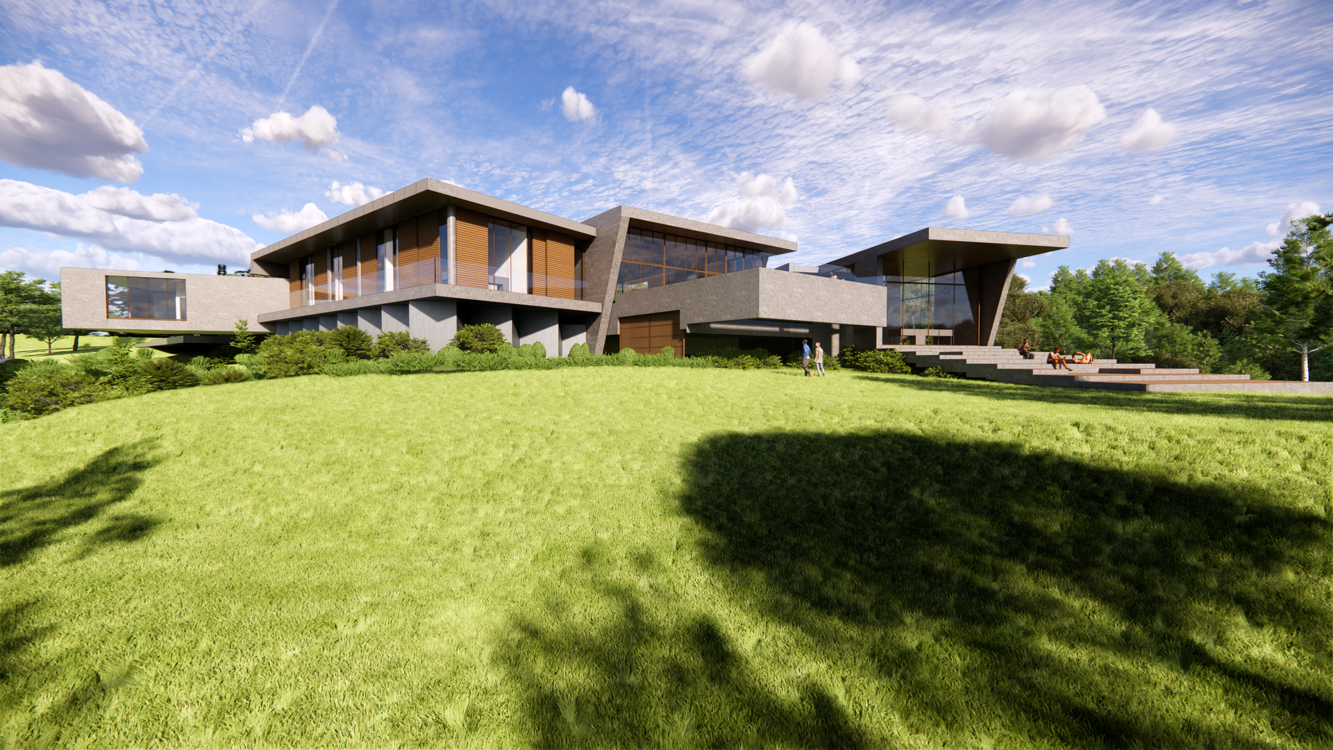 the architecture is situated on the top of a slope, overseeing the creek, which runs through the site. the architecture diverted and fabricated from the dynamic flow of the creek and the incline, forming the extrusion of spaces with points of interest and thus, becoming the shape of the architecture.